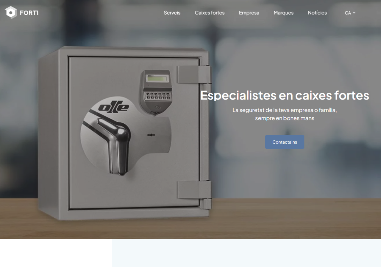 Forti Seguretat és una empresa amb molts anys d’experiència en el sector de les caixes fortes, oferint serveis tant per a empreses com per a particulars. Hem treballat en el redisseny complet de la seva web, mantenint els elements clàssics però afegint novetats importants per millorar l’experiència d'usuari i la visibilitat online.