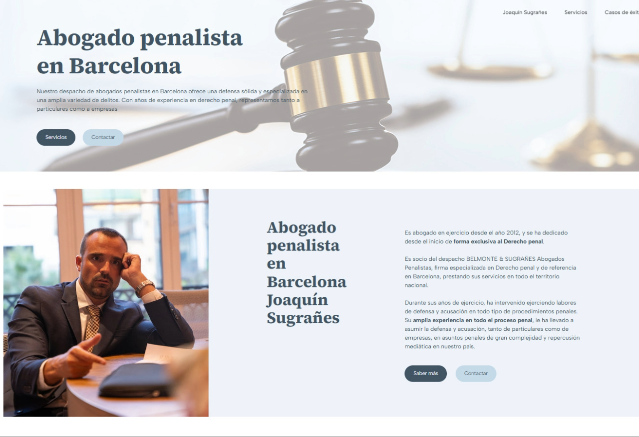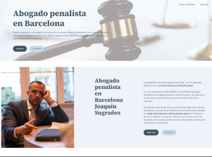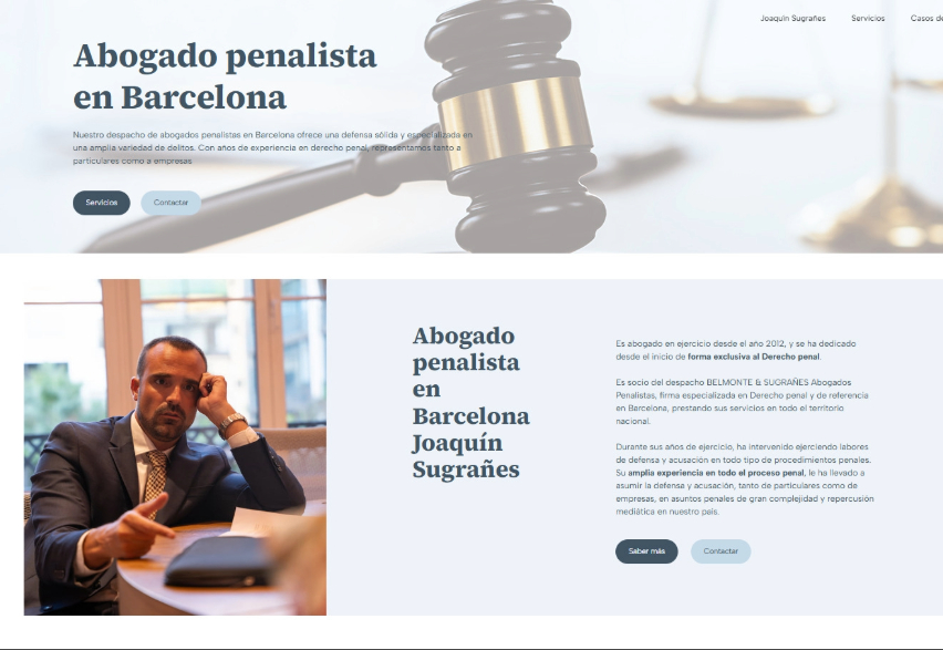 La web de Joaquín Sugrañes fue desarrollada con un diseño totalmente a medida, con el fin de reflejar la seriedad y experiencia del abogado. La estructura visual es moderna y clara, utilizando grandes imágenes y una tipografía que resalta los aspectos clave del abogado y sus servicios.