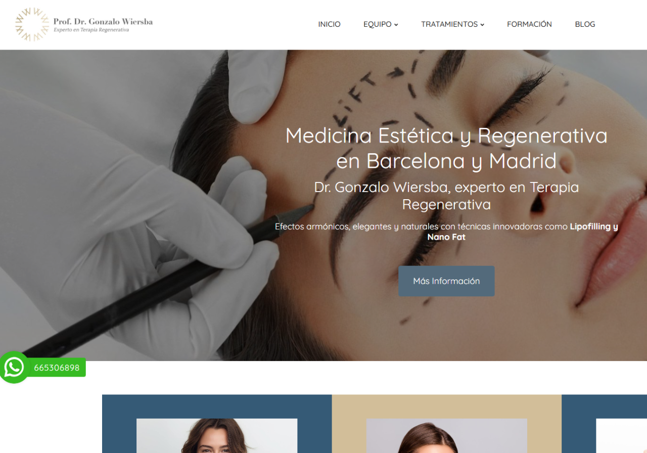 We show how we developed the website for Dr. Gonzalo Wiersba, a center specialized in regenerative therapy treatments, applying a local SEO strategy, a customized WordPress design, and optimization aimed at increasing its visibility in the health sector.