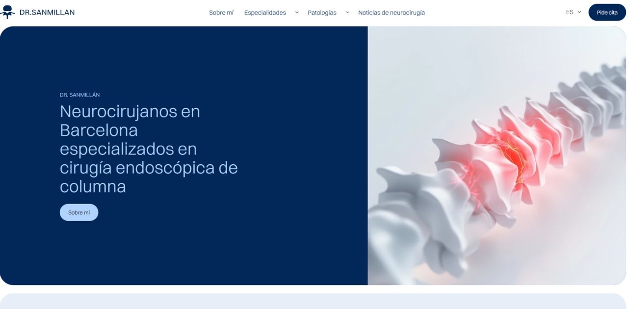 Dr. Samillán is a renowned neurosurgeon in Barcelona, specializing in spinal pathologies. The project involved designing a clean, modern, and optimized website for patient engagement, following the strictest EEAT guidelines to ensure the medical content's reliability and quality.