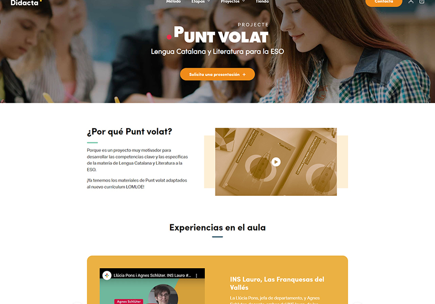 At the programming level, the website is divided into seven sectors: method, stages, projects, store, teachers, events and resources. Within stages there is educational material for Primary, ESO and Baccalaureate students of different subjects. As for the projects, there are ten different ones. Each one works on different areas of learning, from spelling to reading to grammar. The store section consists of 14 pages with items that can be filtered according to language, stage, subject, course and type of item. Both digital and physical material can be found. Finally, the resources are based on a blog with articles of interest and a section of samples where the projects are presented in more depth.