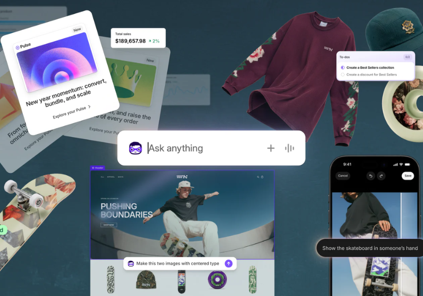 Deja de ser una IA generativa conversacional para participar dentro del ecosistema de Shopify, pudiendo hacer modificaciones dentro de las diferentes áreas del CMS. Incluso cuenta con un sistema de edición de imágenes con IA que parece ser muy eficaz y similar al conocido Nano Banana de Gemini.